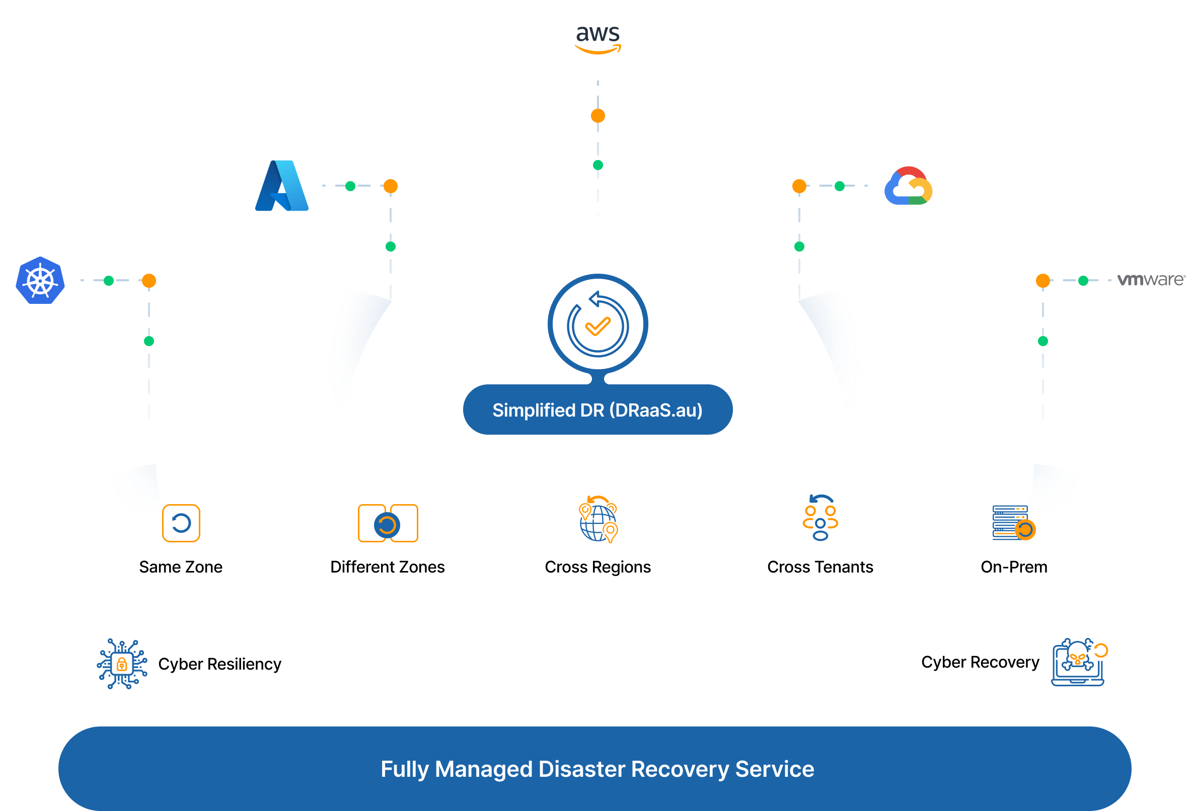 Hosting services On-Prem and looking at Public Cloud as a Disaster Recovery site? Take advantage of Automated and Orchestrated Disaster Recovery to Public Cloud (AWS, Azure, GCP).